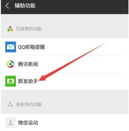 3、在“進入輔助功能界面就看到群發助手了,點擊“群發助手”。
