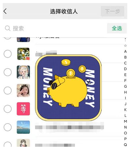 4.勾選需要群發消息的微信好友。