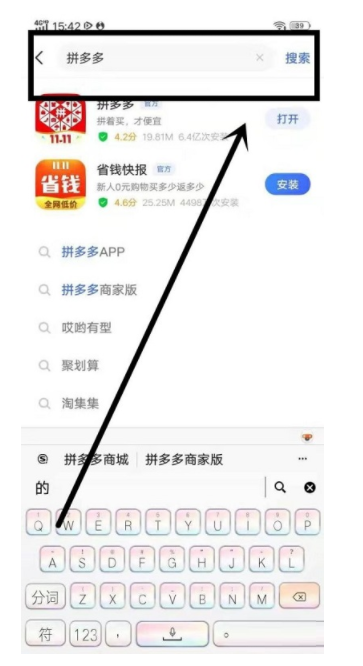 3、在搜索欄中輸入拼多多并點擊查詢。