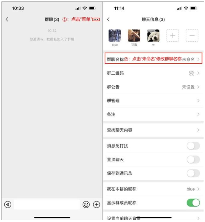 3、新建群后,我們還可以點擊上份的“...”菜單進入,再點擊【群聊名稱】來修改群聊的名稱,完成后確定即可。