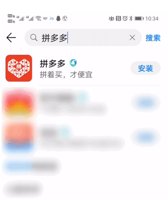 3.接著在搜索框中輸入拼多多,選擇第一條搜索結果,點擊安裝按鈕。