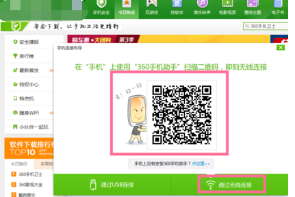 以上便是360手機助手連接電腦的方法步驟,通過掃描二維碼的方式實現無線連接,有不清楚的網友可參照教程操作。