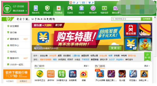 5、這樣360手機助手就連接電腦成功了,可以手機和電腦實現無線的下載和安裝軟件等。