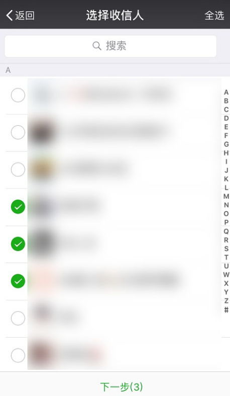 7.勾選想要發送的通訊錄好友,點擊“下一步”