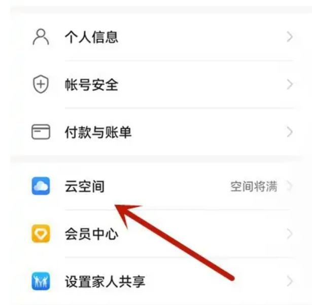 1、在華為帳號中心里面,點擊云空間選項進入。