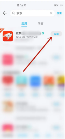 2、在搜索框中我們輸入【京東】點擊搜索,點擊京東旁邊的【安裝】。