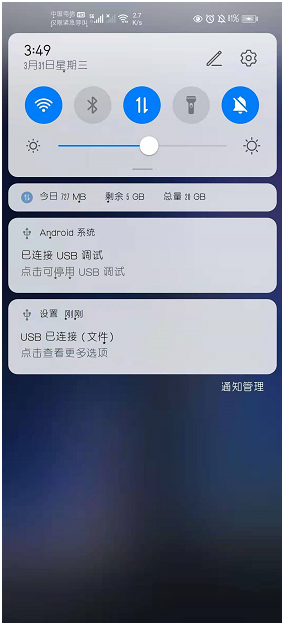 5、將數據線跟電腦連接上之后即可看到有usb調試。