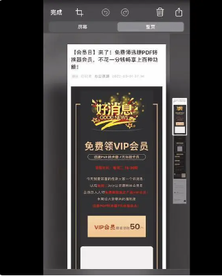 ③然后拖動右側的進入條,就可以看到一整頁的內容都被截取下來了,再點擊左上角的【完成】按鈕,保存為PDF格式就可以了。