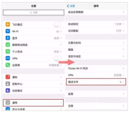 4、我們需要找到系統的【設置】-【通用】-【描述文件與設備管理】欄目;
