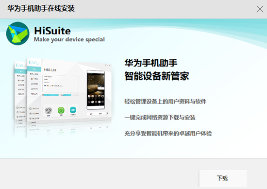 3、雙擊華為手機助手安裝向導,點擊下載。