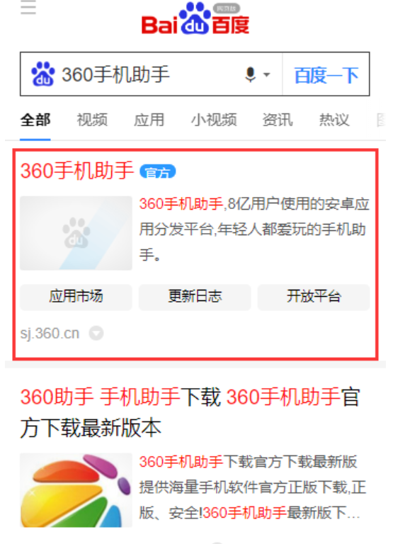 1、如何下載安裝360手機助手呢?首先打開瀏覽器,百度搜索“360手機助手官網”記得帶上官網,不然可能會遇到冒牌的網站。