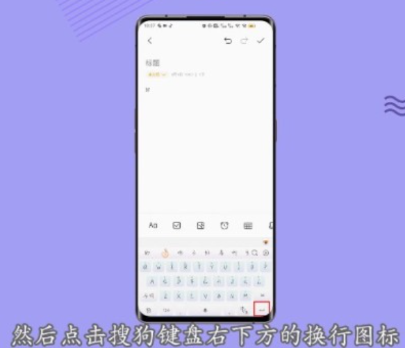 3、輸入文字,點擊搜狗下面的換行圖標就可以換行了。