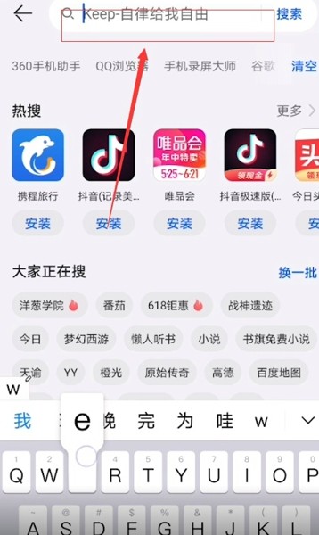 1、打開華為應用市場,點擊最上方【搜索】選項。