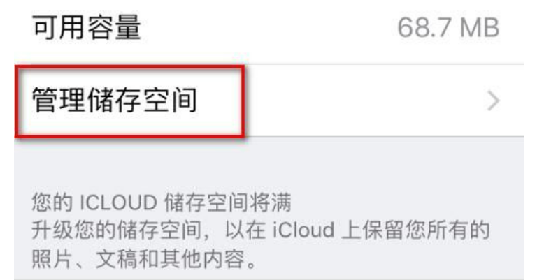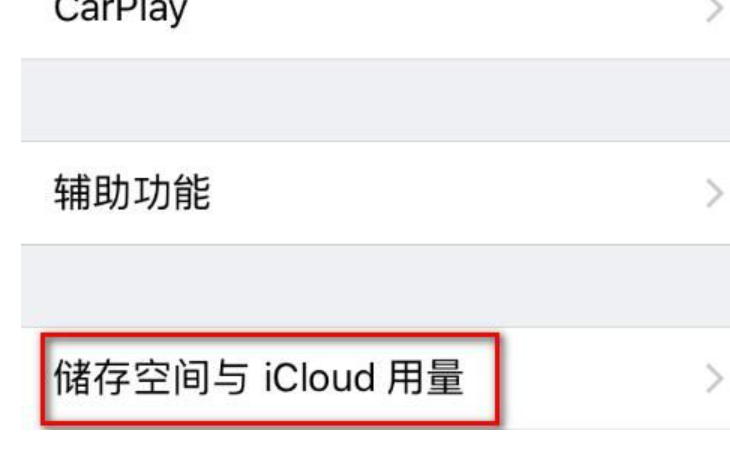 3、然后點擊“ 存儲空間與icloud用量 ”。