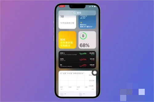 1、把蘋果手機主屏幕打開,將屏幕向右側滑動,調出手機的【負一屏】。