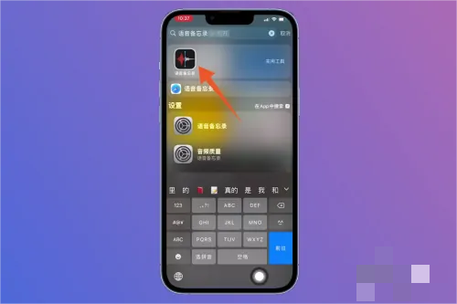 2、在負一屏頁面中輸入語音備忘錄并搜索,在結果中打開【語音備忘錄】這個應用。
