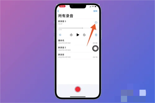 6、如果需要修改該條錄音的名字,點擊錄音后方的【三個小點】圖標。