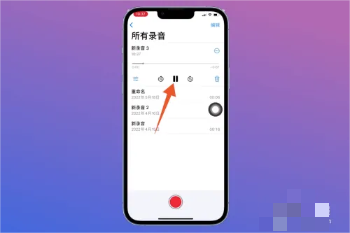 5、結束錄音后,錄音文件會自動保存到手機,可以點擊【播放】按鈕,試聽錄音內容。