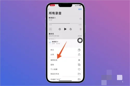 7、在彈出來的選項窗口里面,找到【編輯錄音】這個選項并點擊。