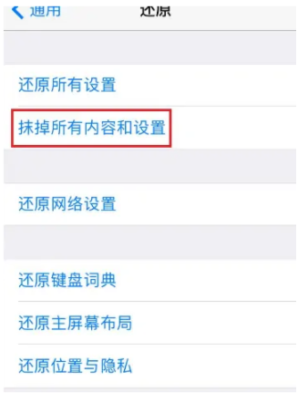 2、在通用界面下點擊還原,選擇還原里面的“抹掉所有 內容和設置”。