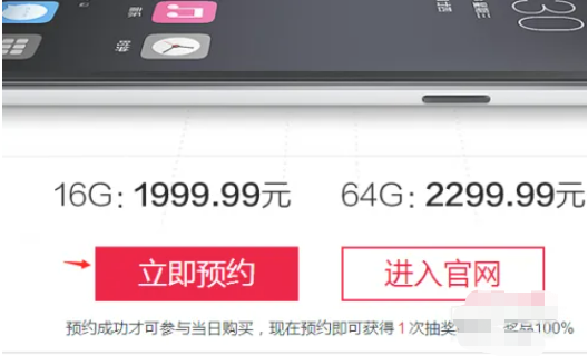 2、然后就是點擊頁面中的“立即預約”按鈕開始預約一加手機。