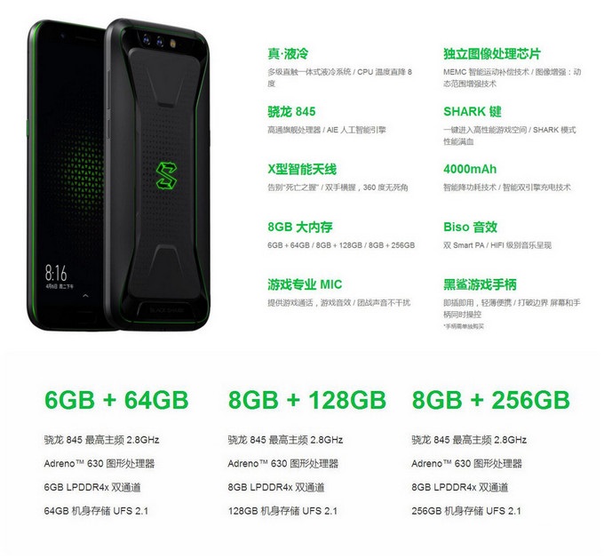 黑鯊游戲手機使用高通驍龍845處理器,是目前量產市售機型旗艦處理器,6GB/8GB LPDDR4x 雙通道內存,UFS2.1的機身存儲,手機“三大件”的使用都是目前的旗艦手機配置,想要玩的爽快,硬件配置是不可或缺的最重要部分,比起競品紅某使用的是去年的旗艦處理器835,黑鯊使用845當然會更好。