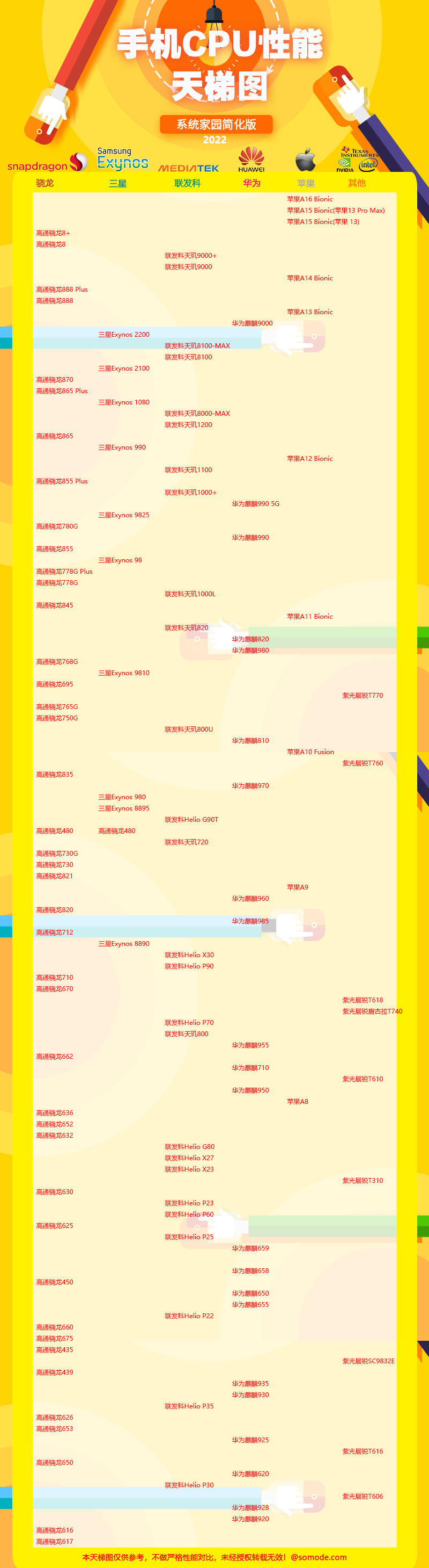 最新的手機天梯圖已經出來了,現在的手機技術是突飛猛進短短一個月就給朋友們帶來了很多的新功能和新科技,下面就給大家帶來,2022年手機處理器天梯圖,如果你一直關注手機就快來看看詳細的排名吧。