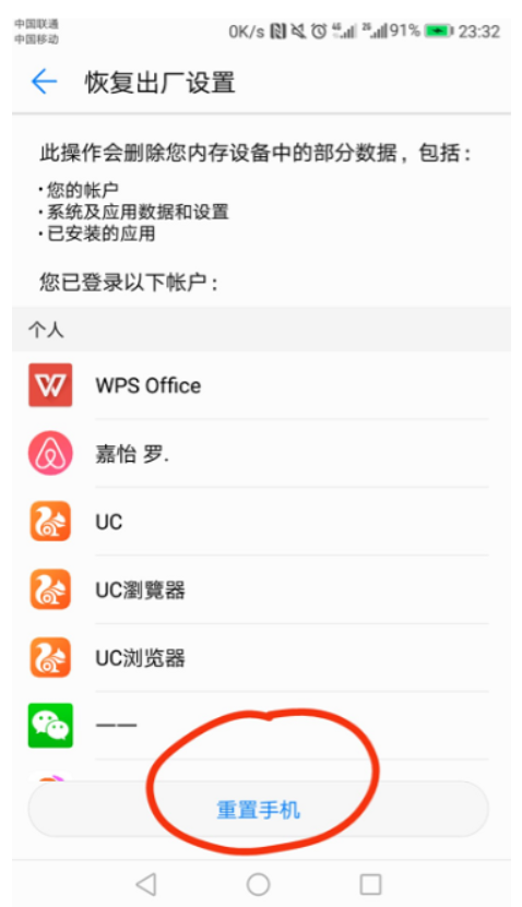 5、在恢復出廠設置頁面點擊下方的”重置手機“就可以重裝系統。