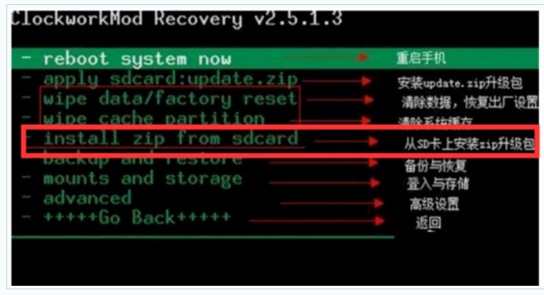4、選擇第五項從SD卡上安裝ZIP升級包,進入后選擇ROM;