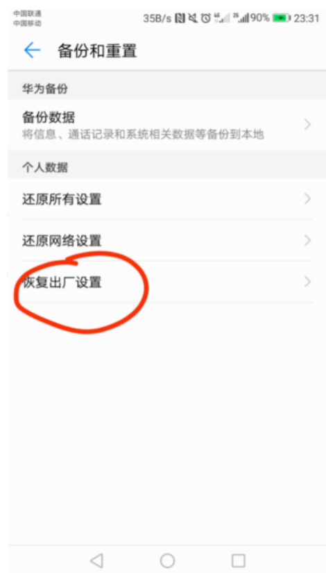 2、選擇第三項,然后進入選擇yes,進行數據清除;