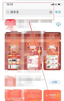 進入搜索界面后,輸入"拼多多“進行搜索。
