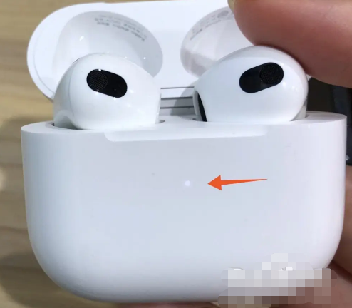 2、待耳機正面的充電燈,發出白色的光,將耳機處于打開狀態。