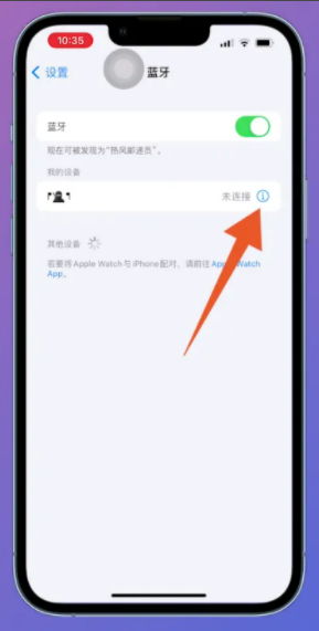 2、切換到藍牙設置頁面后,點擊頁面中的設備藍牙耳機后面的感嘆號。