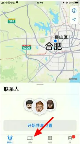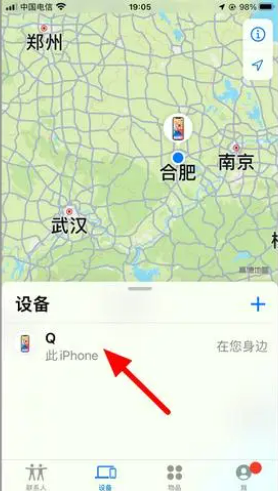 3、在設備選項下,找到并點擊要查看位置的手機,這樣就查看手機位置成功。