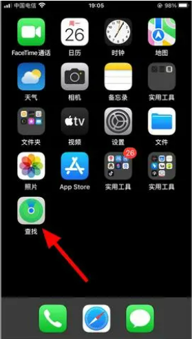 1、找朋友或家人借一部蘋果手機,登錄自己的Apple ID。完成登錄后,在手機桌面打開查找。