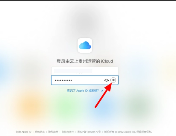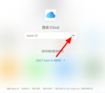 2、在iCloud界面,輸入帳號、密碼,點擊→。