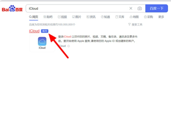 1、在電腦上打開瀏覽器搜索iCloud,打開iCloud官網。