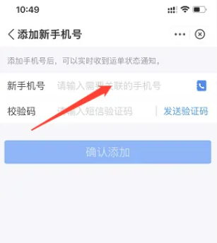 6、進入添加新手機號頁面,輸入查詢的手機號以及收到的驗證碼,即可綁定成功。