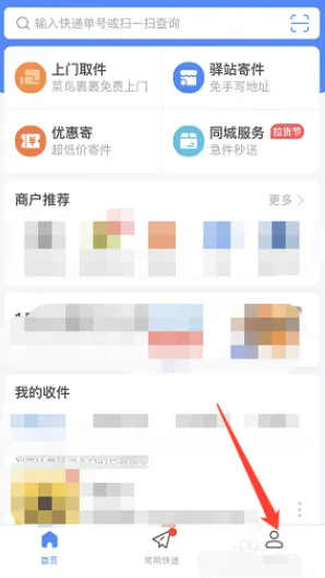 3、進入我的快遞頁面后,點擊右下角的我的。
