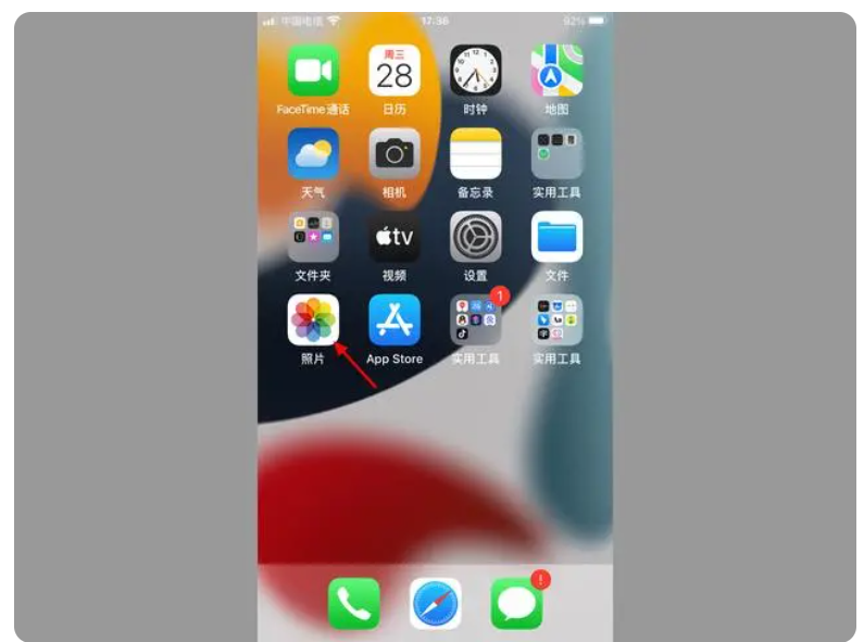 1、蘋果手機壁紙怎么設置呢?首先在手機桌面,點擊【照片】。