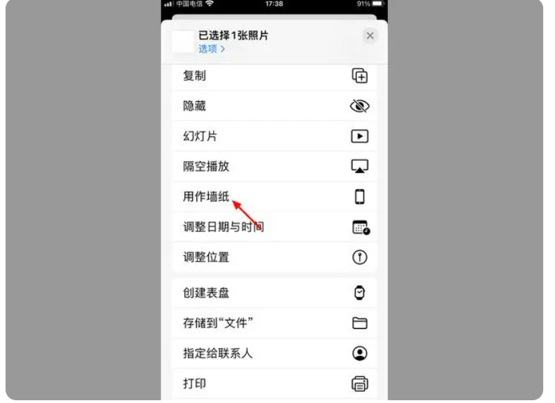 4、在分享的界面,點擊【用作墻紙】即可。