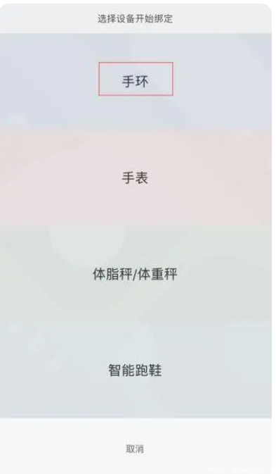 4、然后再選擇“手環”,此時需要將小米手環3靠近手機,將會自動搜索和匹配,同時根據手機界面的提示,再小米手環3按一下鍵進行確認即可成功綁定手機,也就說明小米手環3已經連接上了手機。
