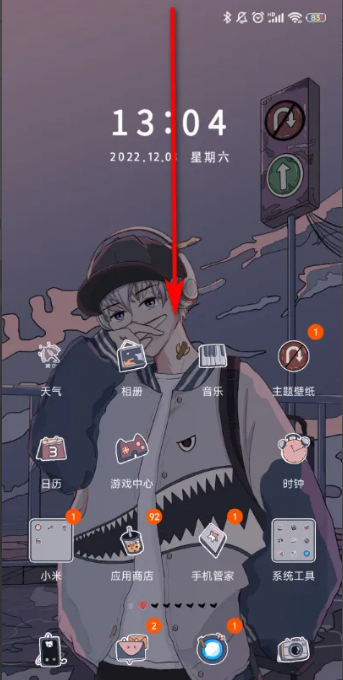 1、轉換到手機桌面第一頁,下拉頂部的屏幕打開控制中心。