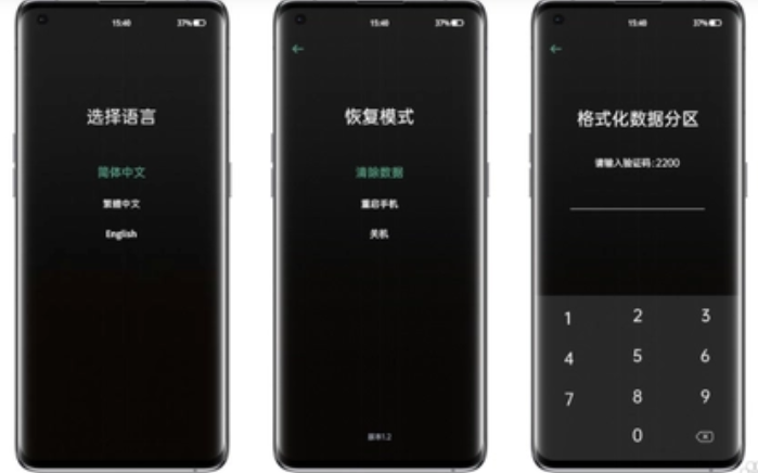 使用恢復模式(Recovery)重置手機,手機上的所有資料會清除。另外,這種方式重置手機只適用于部分機型,包括Find X5系列、Reno7系列、Reno6 系列、Find X3 系列等。如果在重置過程中與下述的顯示不一樣,那就參考方法三去售后。