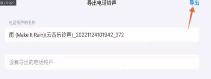 4、等頁面跳轉到導出電話鈴聲的頁面之后,點擊右上角的導出即可將音樂保存。