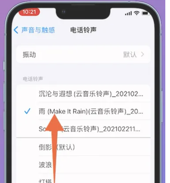 5、進入電話鈴聲的頁面之后,在頁面中勾選剛導入的鈴聲,就可以了。