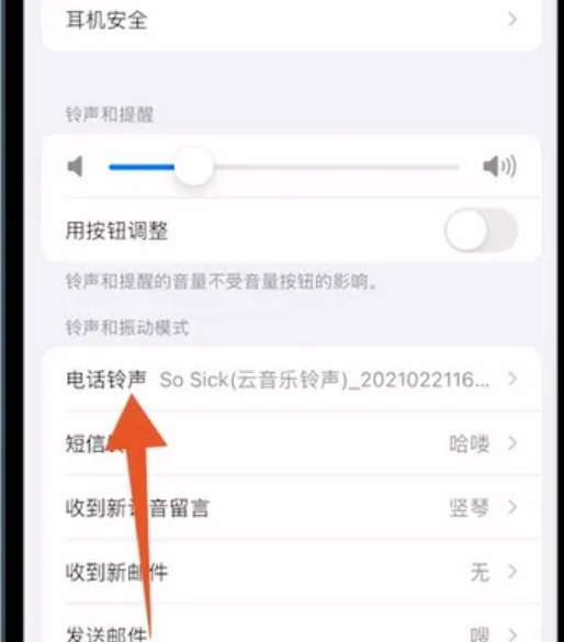 3、進入電話鈴聲的頁面之后,在頁面中選擇鈴聲進行設置即可。