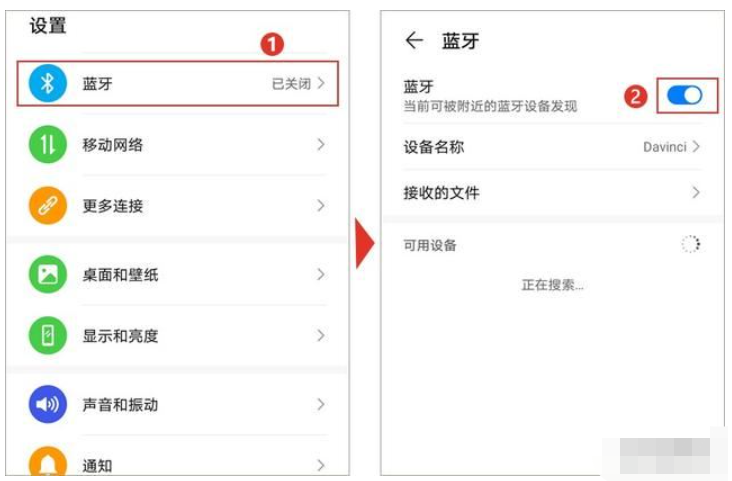 (1)首先,打開智能手機的藍牙功能,以便計算機可以檢測到它。進入“設置”→“藍牙”,打開該功能。