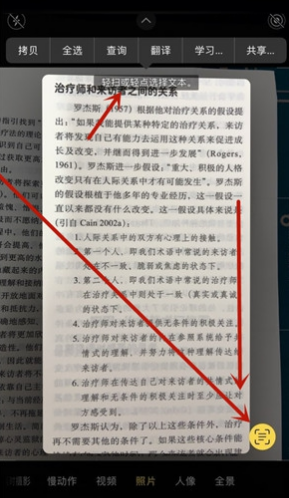 3、開啟后,點擊圖片右下角的文本圖標,選中文本復制即可。