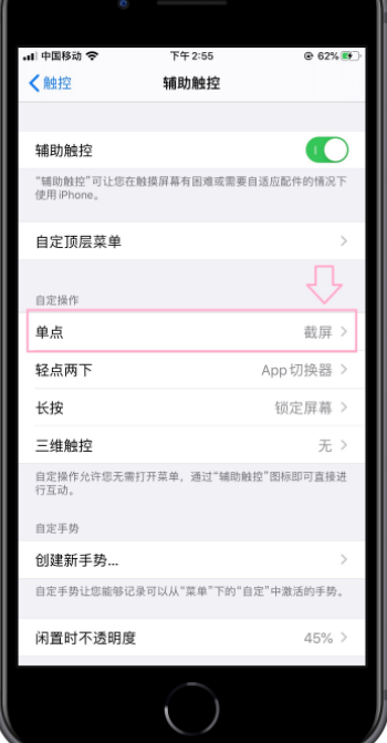 2、將「單點」改為「截屏」,這樣就能快速截屏了。